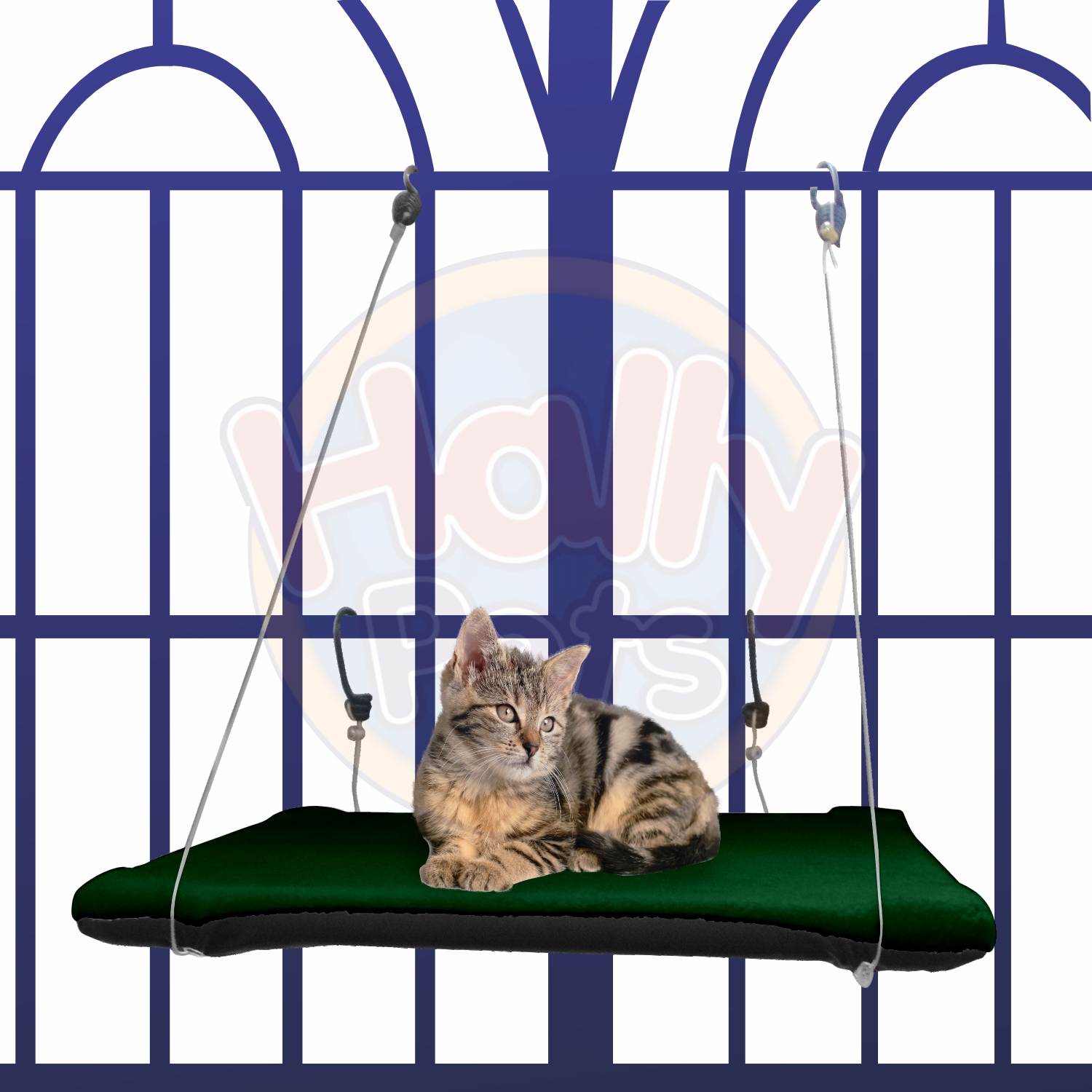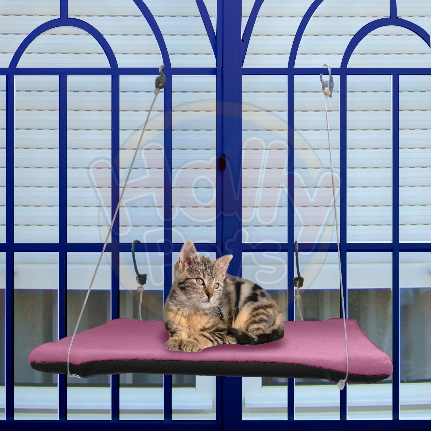 Lleva nuestra espectacular Cama para gatos Tipo Hamaca para la ventana Con Rejas , ocupa poco espacio y se coloca en pocos segundos, quedando completamente horizontal.